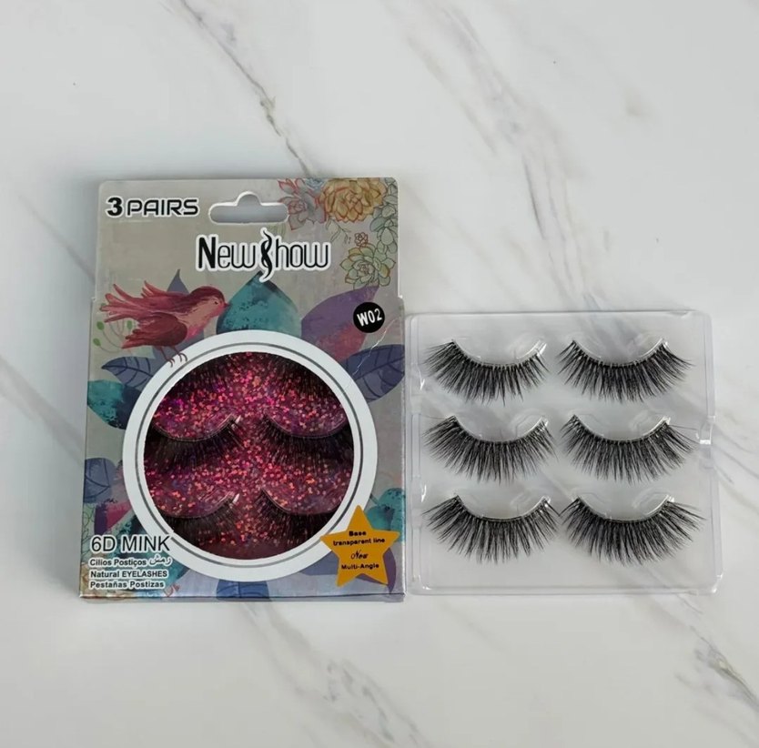 Doğal çok açılı tasarıma sahip, renkli 3 çift takma kirpik seti.