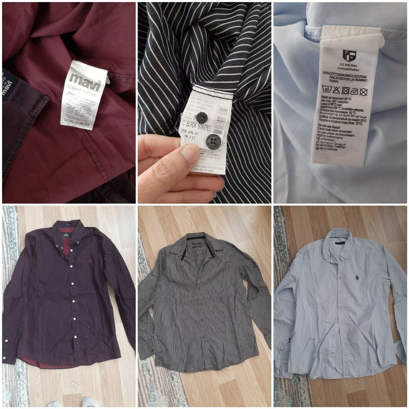 3 gömlek iki koltuk arası ölçülerini belirttim. mavi jeans bordo m beden 51.52 cm. polo açık mavi m beden 53.54. lcw siyah çizgili m beden 54. poloda koltuk altında çok çok az sarilik var yıkadım gecmedi ama belli değil mavi bordo soluk gibi duruyor ama kendi rengi öyle iyi durumdalar hepsinin fiyatidir iade yoktur
