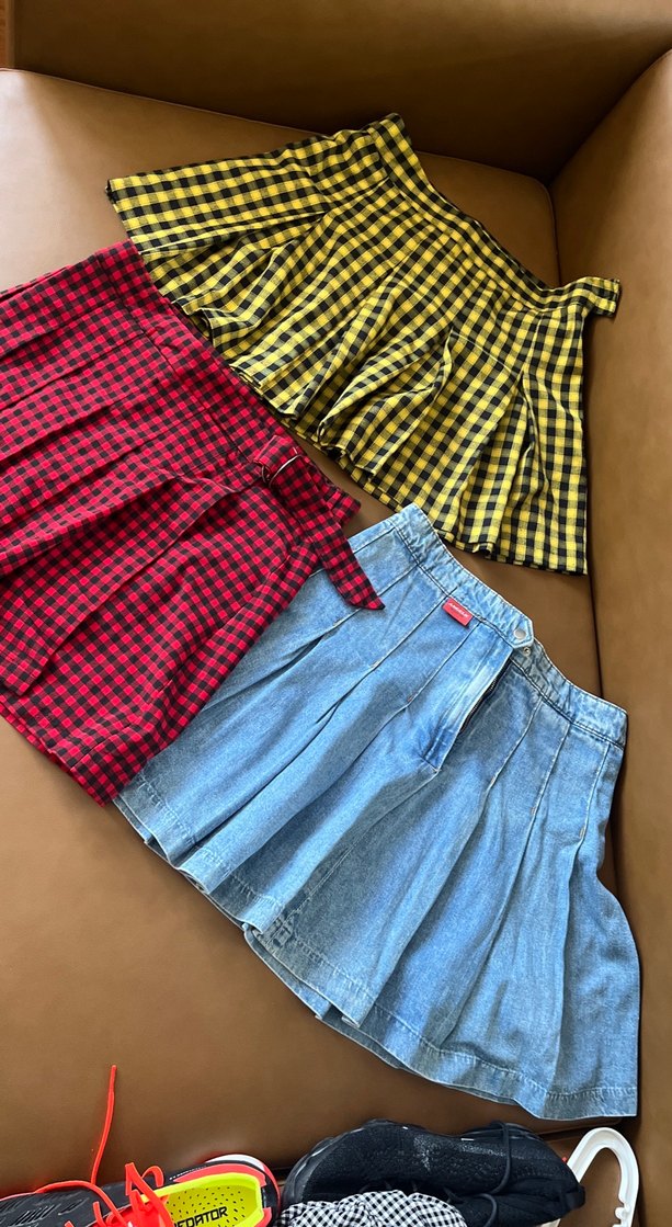 3 etek tek fiyata Renkli Ekose ve Denim Pilili Mini Etekler