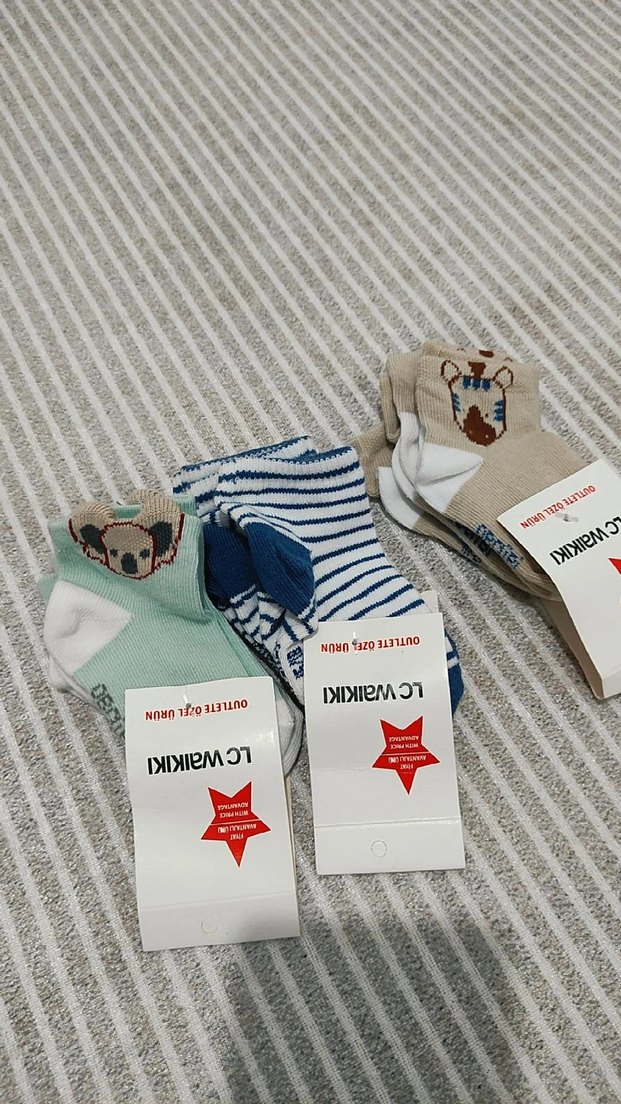 Hediye geldi. Bebeğimin numarasına uymuyor. Defosuz yepyeni. Her biri 3er çift.