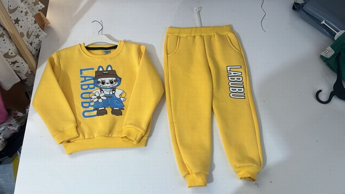 3 iplik kompakt kumaş şardonlu kışlık kız çocuk labubu takım