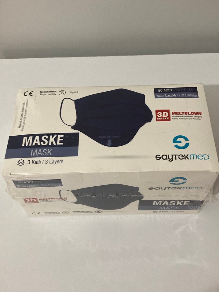 3 katmanlı, 3D tasarımlı siyah maske seti. Meltblown kumaşlı, rahat kulak askılı ve 50 adet içerir. #kadın #erkek #kozmetik #siyah #maske #medikalmaske #yeniveetiketli #defosuz