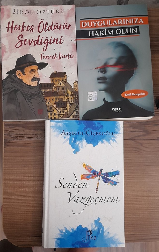 Tuncel Kurtiz'in "Herkes Öldürür Sevdiğini", Emil Krapelin'in "Duygularınıza Hakim Olun" ve Ayşegül Çiçekoğlu'nun "Senden Vazgeçmem" kitaplarından oluşan 3 roman seti.
