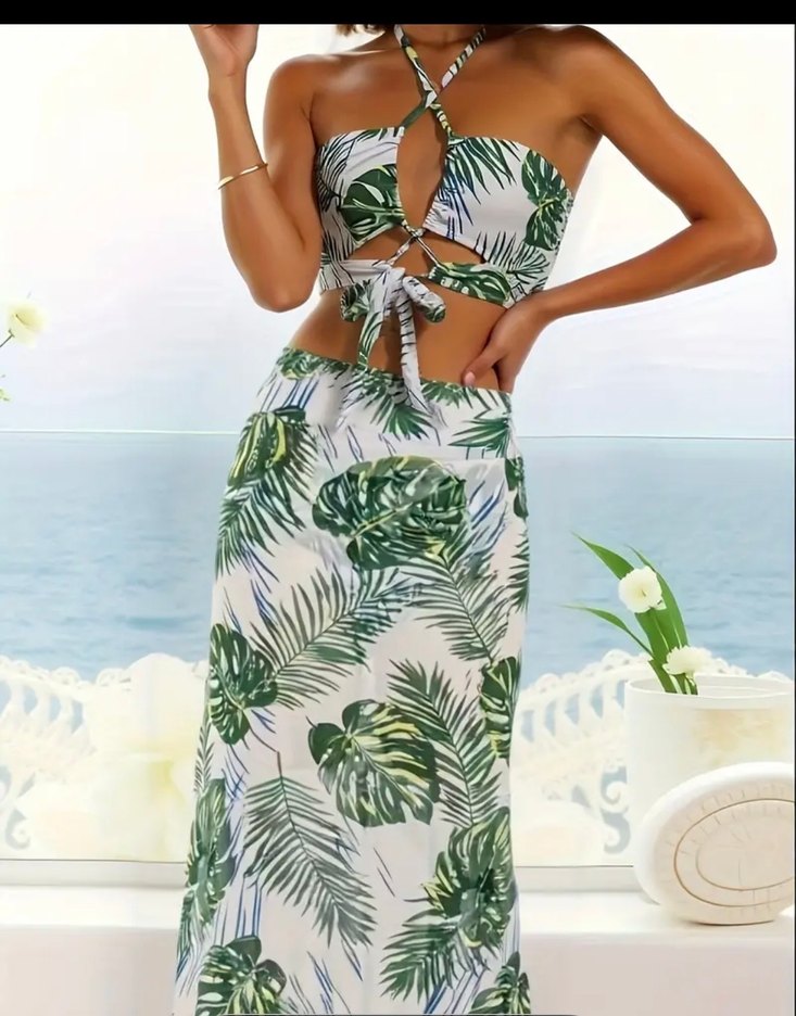 Etekli bikini takımı 3 lü set. Çok şık. Hızlı kuruyan elastan kumaş