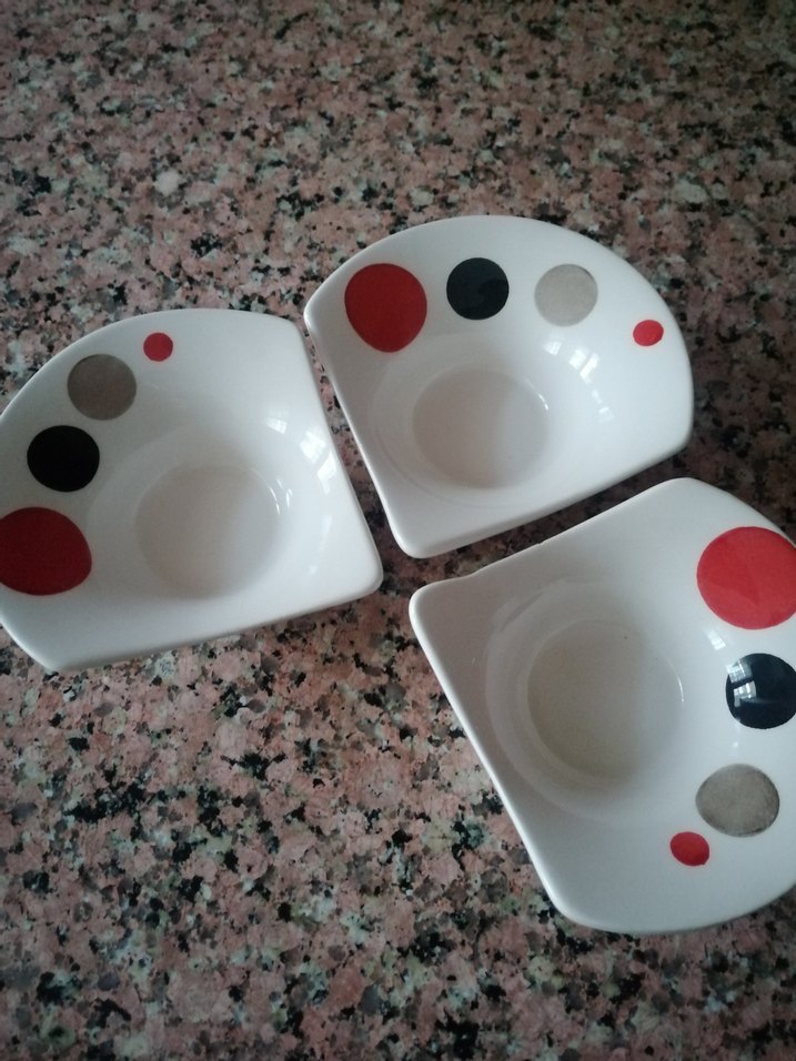 Üç adet porselen çerezlik hiç kullanılmamıştır. Tertemiz.