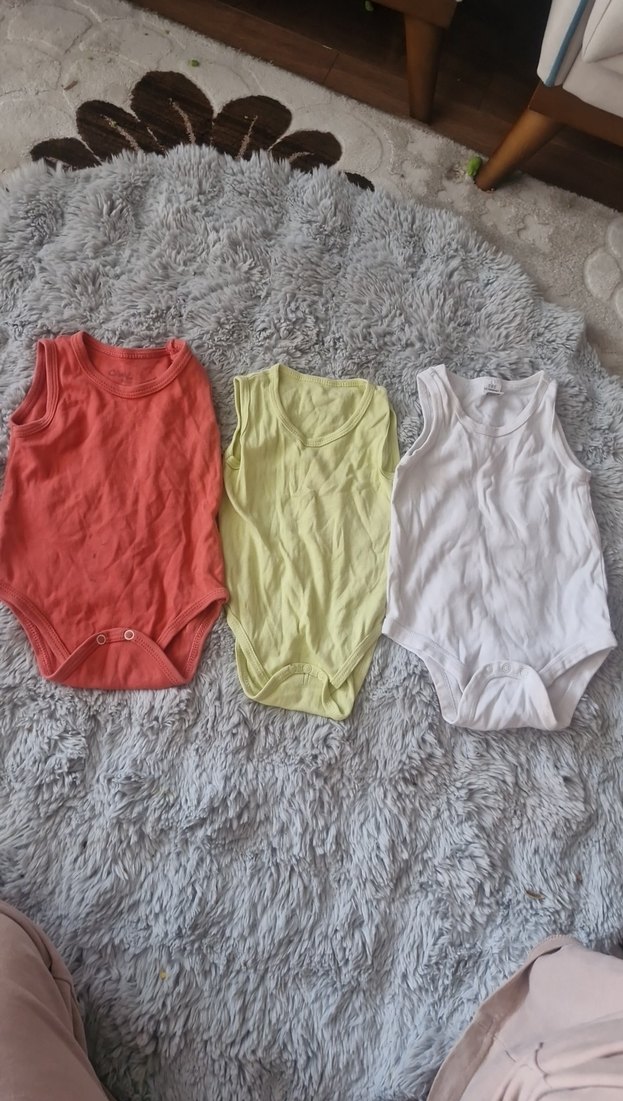 Yumuşak pamuklu kumaştan, çok renkli 3'lü kolsuz bebek body seti, yuvarlak yakalı ve rahat kesim. Sade ve kullanışlı tasarım.