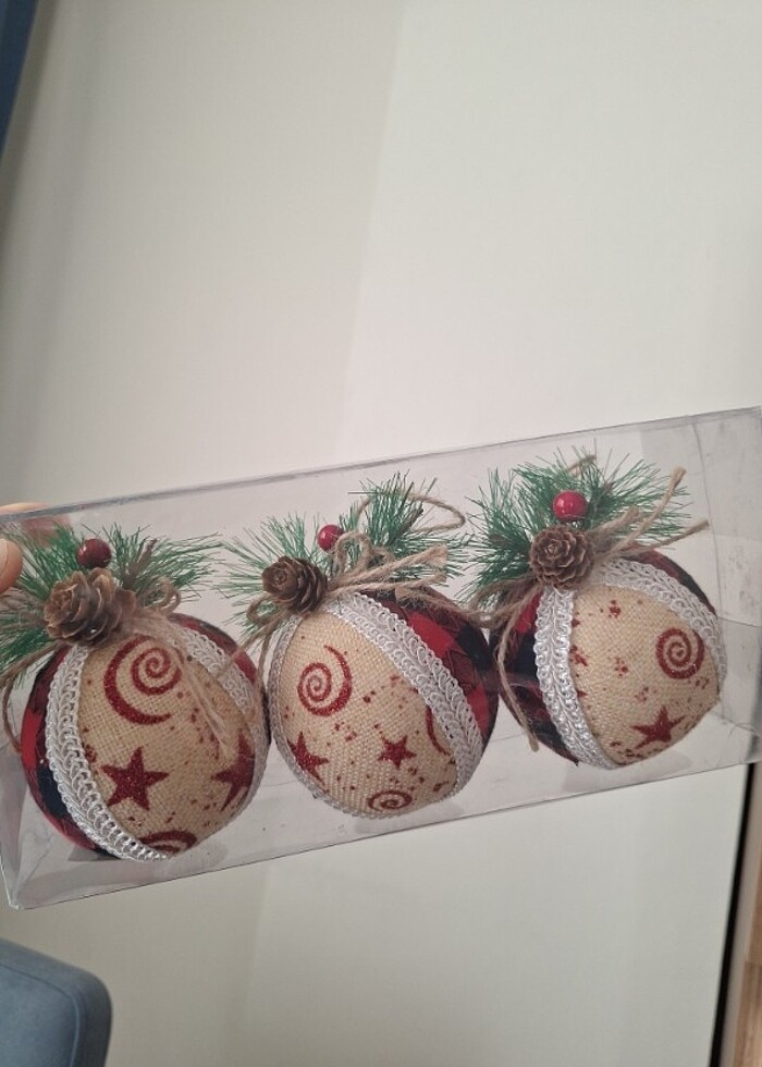 3 lü Ekose Desen Top Yılbaşı Süsü. Kutulu. Sıfır. Yılbaşı Süsleri