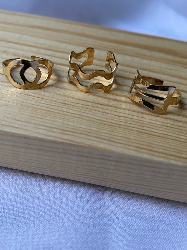 ✨ 3’lü gold yüzük seti ✨ Şık ve zarif tasarımıyla her parmakta ayrı bir ışıltı Üç farklı model tek sette — ister birlikte ister ayrı ayrı kullan! ✅ Kararma yapmaz, suya dayanıklıdır. Uzun ömürlü çelik malzeme. Günlük kombinlerine gold ışıltı kat! ✨