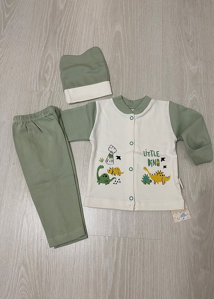 0-3 ay yeni doğan 3 lü settir Pamuklu yumuşak kumaş olup elleri kendinden eldivenlidir