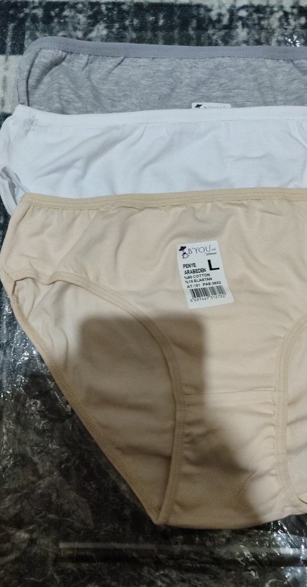 Beyaz, gri ve krem 3'lü kadın külot. Yeni etiketli ürün. Defosuz. L beden. İade ve sipariş iptali yok!!!