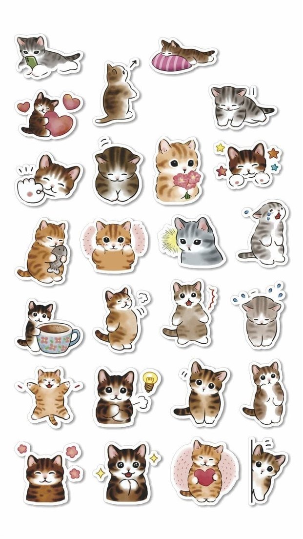 3'lü Pastel Kahverengi Kedi stickerleri
