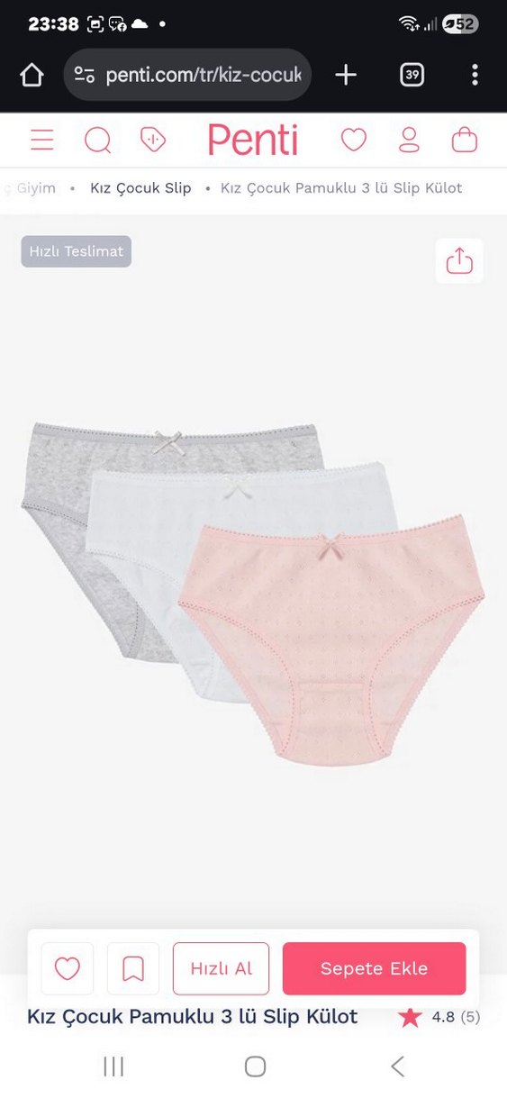 Bu set, pembe, beyaz ve gri renklerde üç pastel tonunda, sade tasarımlı midi çoçuk külotu içerir. Her parçada küçük fiyonk detayı bulunur ve minimalist, rahat bir uyum sağlar. Normcore tarzda, normal boyda ürünlerdir.