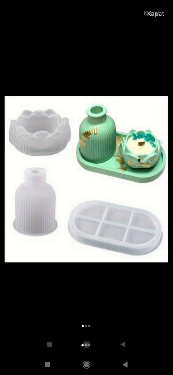 3 lü silikon mum ve dekoratif vazo mumluklar ile birlikte tepsi içeren set.