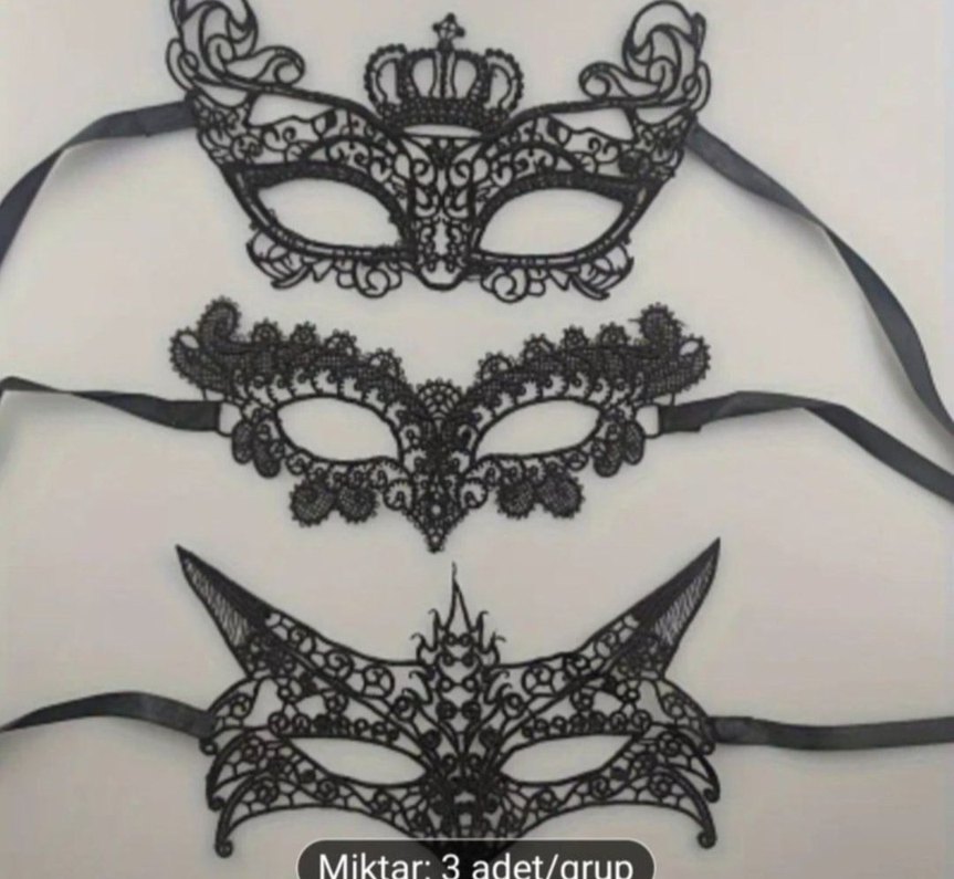 Sayfamdan Tüm fiyatlar, Pazarlıksız Son Fiyat'tır... Aldım Fiyat'ı dır... İADE YOK'tur... Temiz ve özenli ürünler – hızlı kargo Önce GÜVEN... İnce işçilikle hazırlanmış 3 adet siyah dantel maske seti, ayarlanabilir bantlıdır. Sıfır ambalajında üründür 3 çesitli ürün Tek fiyat...
