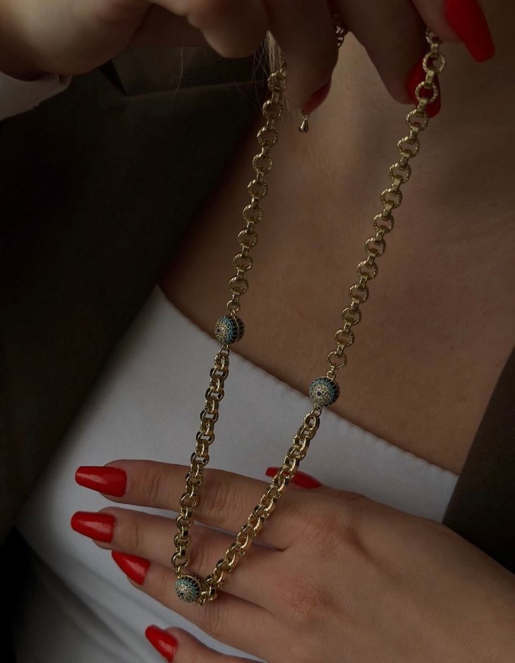 Nazar boncuk detay 14K zirkon taş kolye