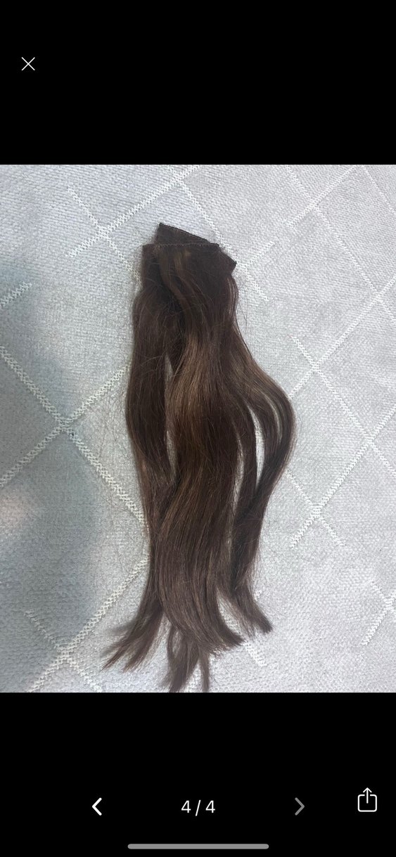 3 parça gerçek saçtır. Boyu 40-45 cm. Çıt çıtları sağlam. Saçlar kahve boyalıdır. İstediğiniz renge boyayabilirsiniz.