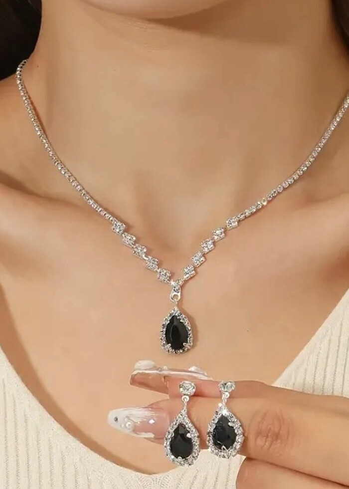 3 parça siyah taşlı kolye seti. Çok şık.