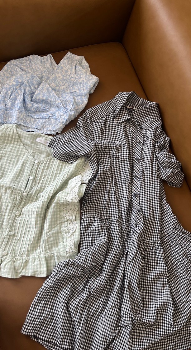 3 parca tek Kız Çocuk Gri Ekose Kısa Kollu Elbise