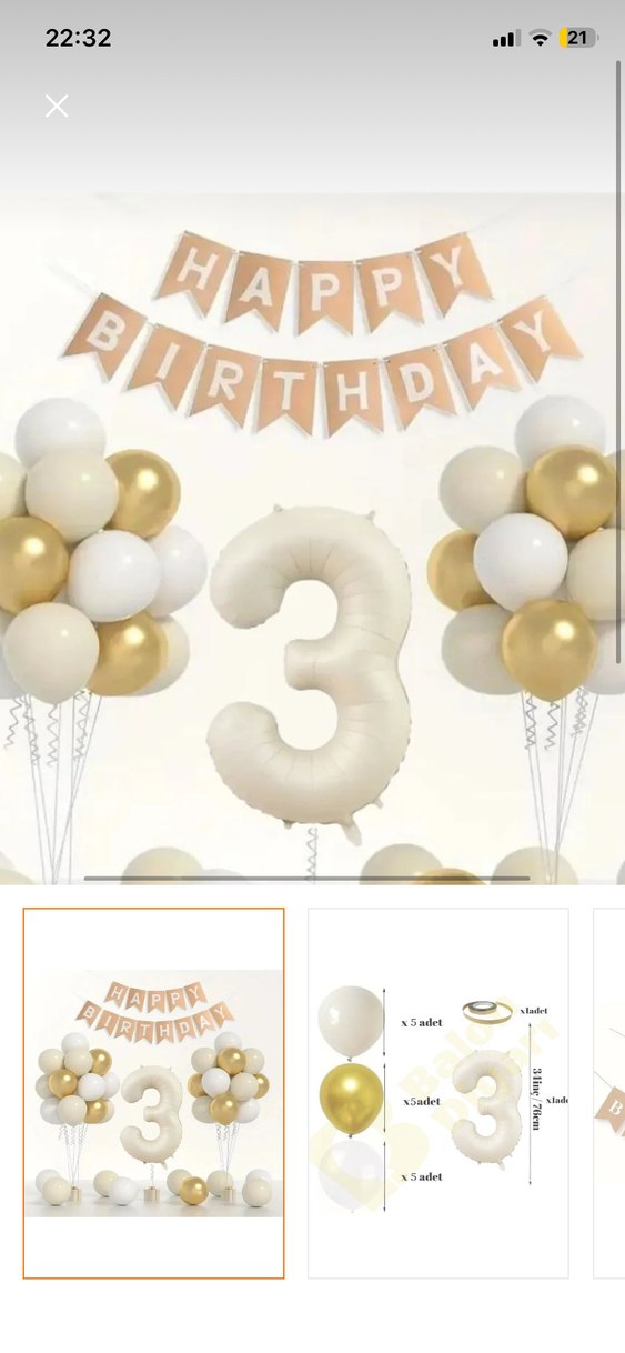 Beyaz büyük 3 rakamı balonu ve "HAPPY BIRTHDAY" pankartı