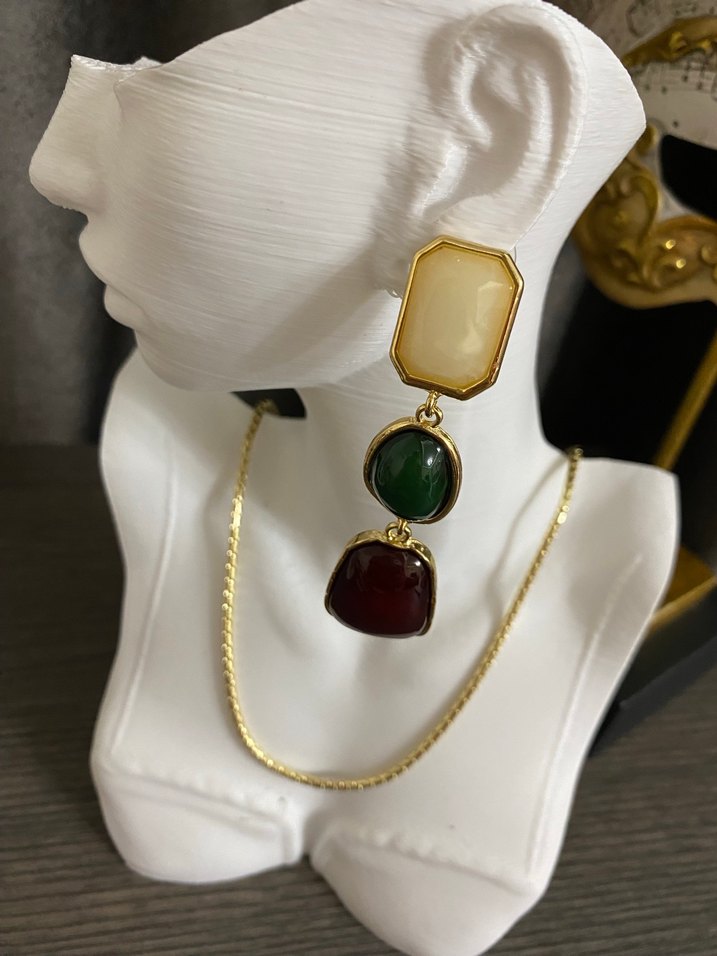 3 renk geometrik desen küpe