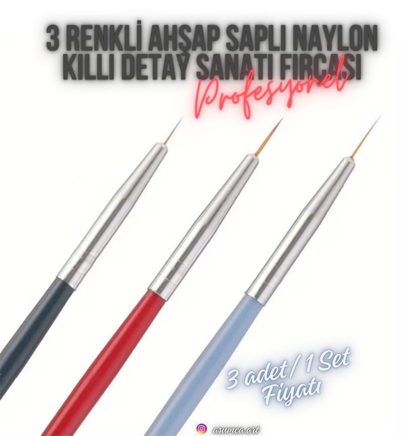 3 Renkli Ahşap Saplı Naylon Kıllı Detay Sanatı Fırçası İnce Uçlu Hassas Tasarım Araçları Profesyoneller İçin İdeal... 3 adet/Bir set fıyatı olup, Sıfır üründür.