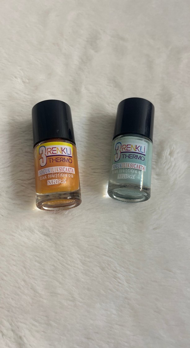 Sıcaklıkla renk değiştiren 3 renkli termo oje seti, canlı ve çok renkli tırnaklar sunar. Sıcak ve soğuk tonlar içerir.