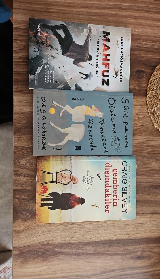 Eray Hacıosmanoğlu'nun 'Mahfuz', Olga Tokarczuk'un 'Özürlerin Üzerinde' ve Craig Silvey'in 'Çemberin Dışındakiler' adlı romanlarından oluşan 3 kitaplık set.