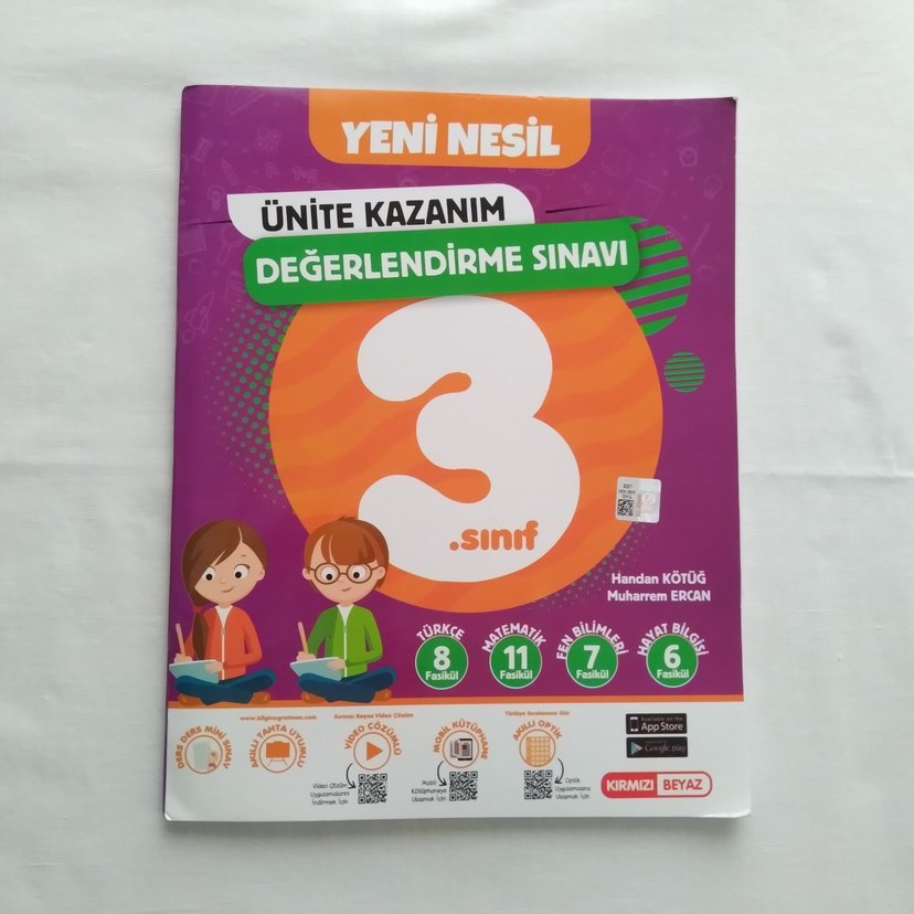 3. sınıf için Türkçe, matematik, fen bilimleri ve sosyal bilgiler ünite kazanım değerlendirme sınavlarını içeren yeni nesil kitap.Hiç kullanılmadı fakat sayfaları yapıştırılmamış.Başka hiç bir sorunu yok.