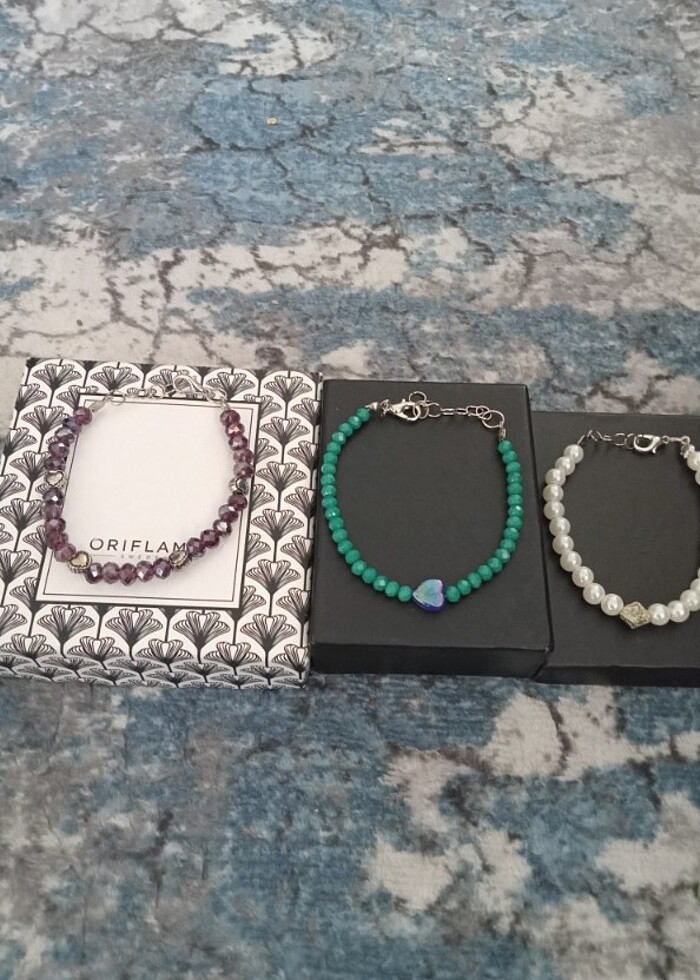 3 tane kristal boncuklu el yapımı bileklik