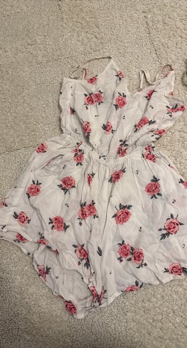 Çiçek desenli, dantelli, askısız ve kolsuz, bol kesim beyaz tulum. Yumuşak sentetik kumaştan, rahat bohem tarz için uygun. 3 ürün birlikte gönderilecek