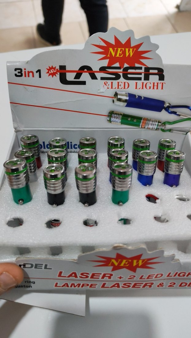 Çok renkli 3'ü 1 arada lazer, 2D lazer işaretçi ve LED ışık özelliklerine sahip kompakt cihaz. 1 adet fiyatıdır