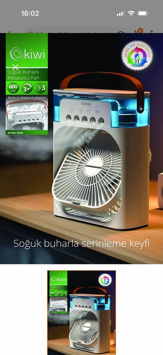 3 ü 1 arada nemlendirici, gece lambası ve soğuk buharlı fan