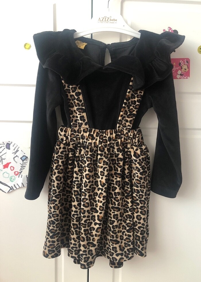 Ürün 2 kere giyildi. Kadife, leoparlı çok güzel kışlık bir elbise. Etikette 4-5 yazıyor ama etikete aldanmayın diye 3 yaş yazıyorum. Kalıbı küçük.