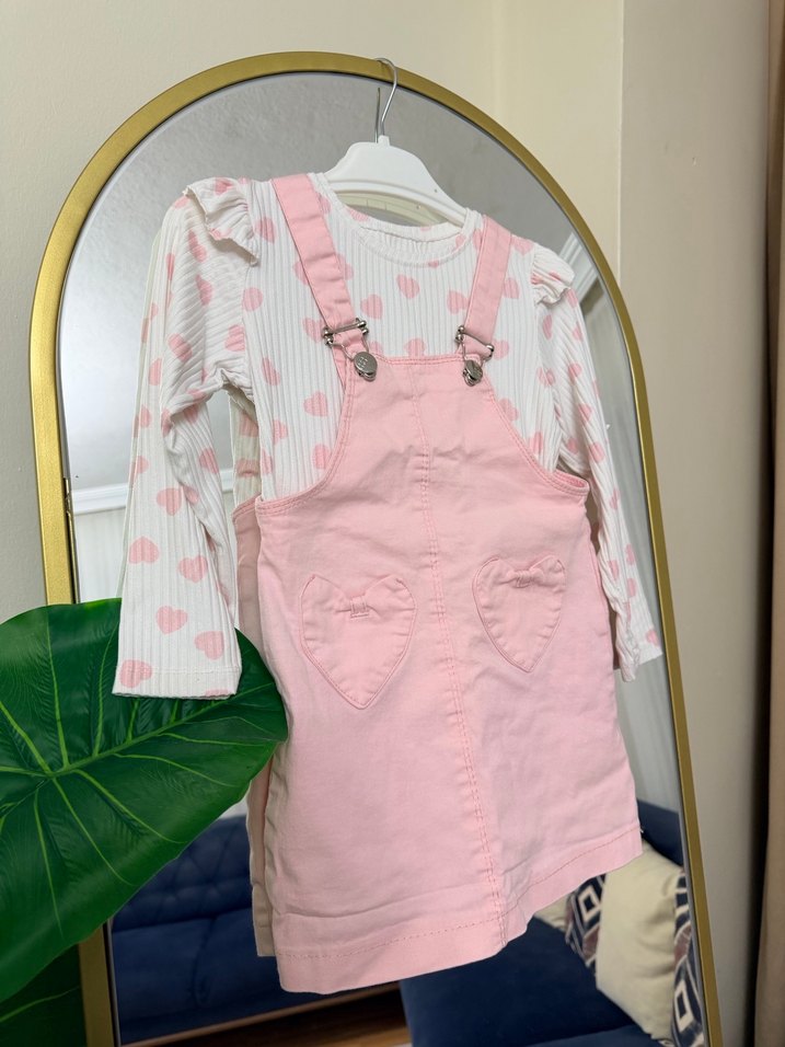 Kız çocuk için uzun kollu, yuvarlak yakalı ve regular fit pamuklu elbise. Pastel pembe tie-dye deseni ve düğmeli detaylar içerir.