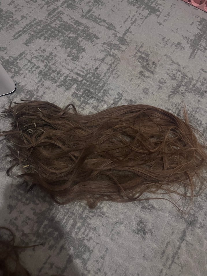 Micro kaynak saç tamir edilmesi gerekiyor karamel kumral rengi var 300 350 adet vardır 45 50 cm