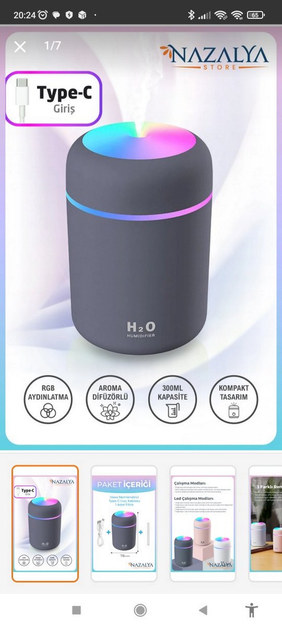 300ml kapasiteli, gri renkli kompakt tasarıma sahip aroma difüzör. RGB aydınlatma ve aroma difüzörlü, nazal konfor için ideal. ️