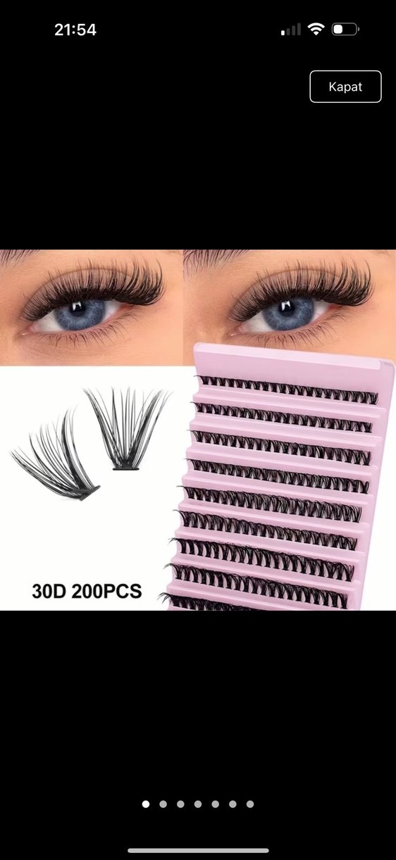 30D hacimli, siyah renkli ıslak görünüm 200 parça takma kirpik seti. Yoğun görünüm için demet şeklinde kirpikler içerir.