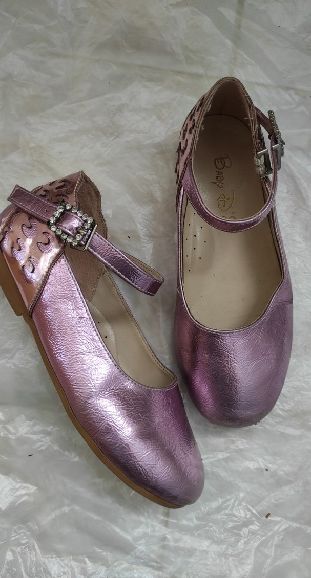 Pembe parlak renkte, tokalı kayışlı ve yılan desenli kız çocuk babet ayakkabı. Yumuşak tabanlıdır.