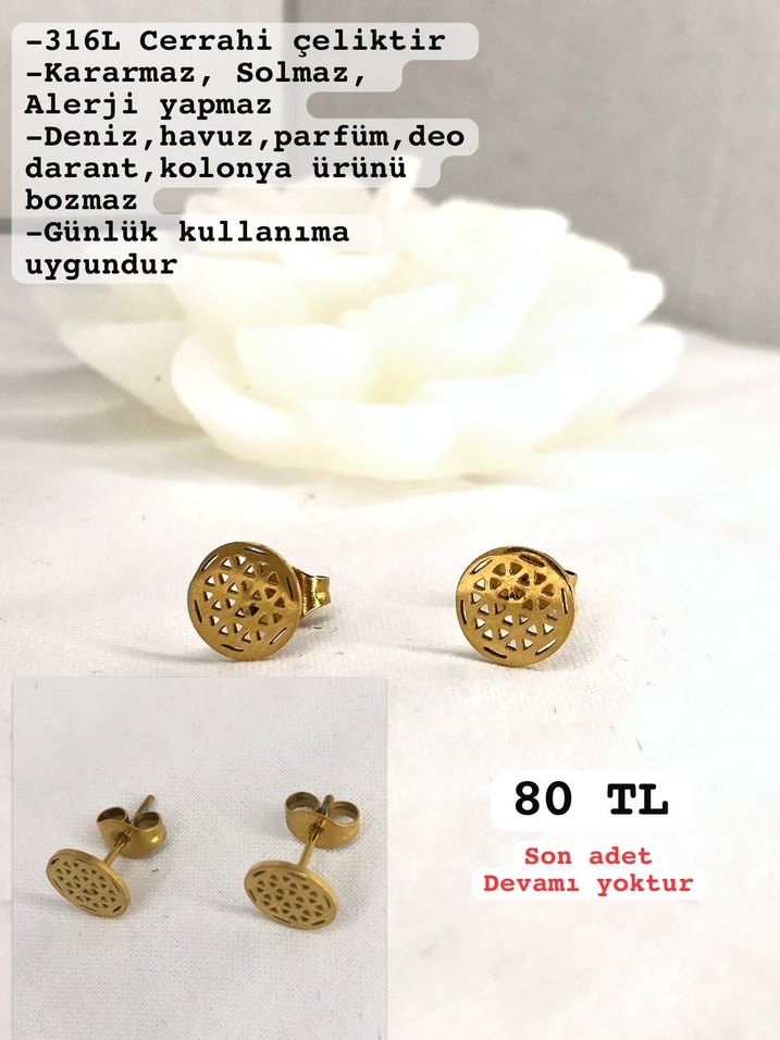 316L cerrahi çelikten yapılmış, kararmaz, solmaz ve alerji yapmaz mini altın küpelerdir. Deniz, havuz, parfüm gibi ürünlere dayanıklıdır ve günlük kullanıma uygundur.