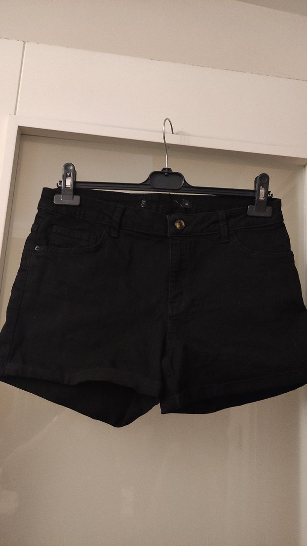 Kemerli, kısa boy, siyah renkli, dar kesim mini denim şort, günlük sokak stili ve açık hava kullanımı için uygundur.
