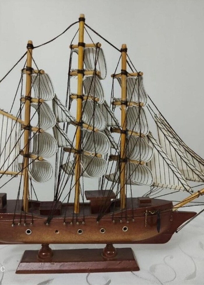 Küçük boylardan değil. 32 cm. Kutuda beklemekten dolayı yelkenlerinde hafif kirlenme var. Buharlı temizleyici ile çıkabilir