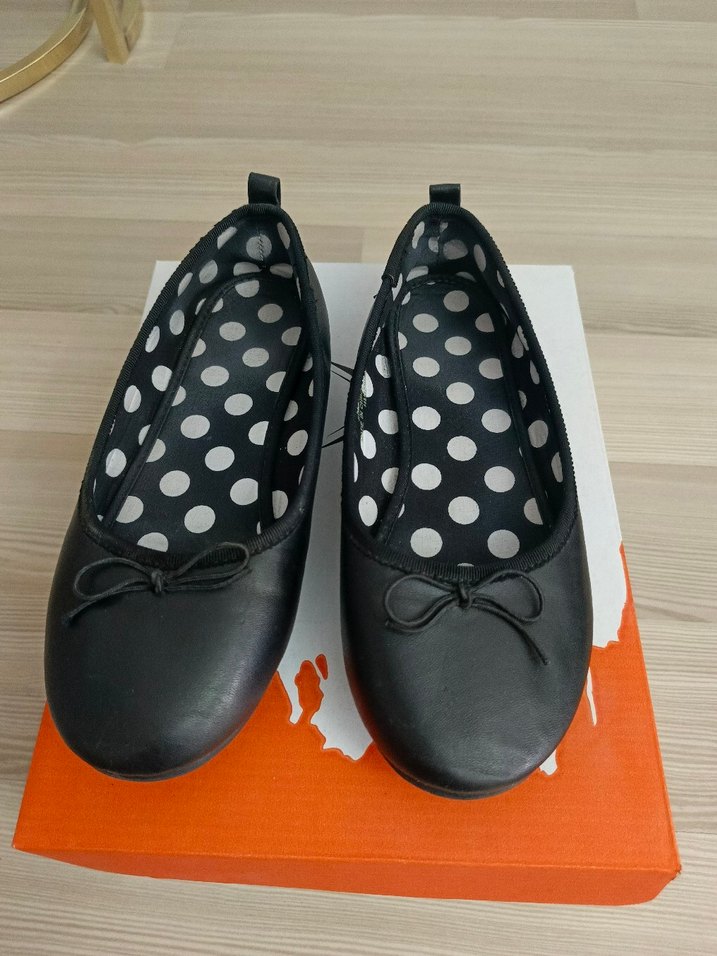 32 no Kızlar için Siyah Puantiyeli Fiyonklu Babet