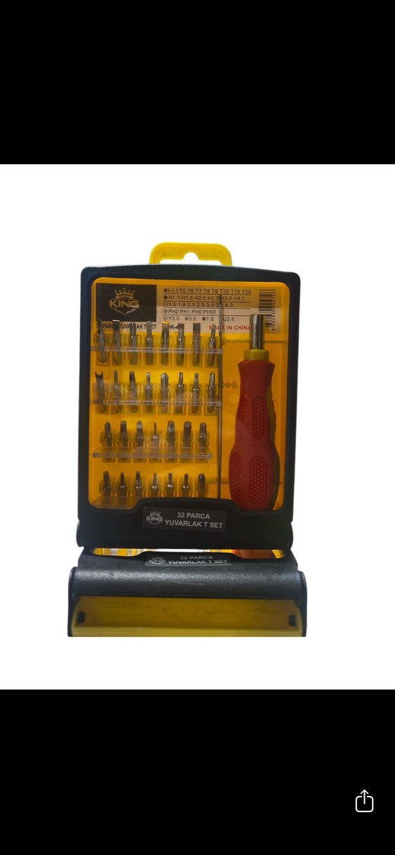 32 parçadan oluşan model kit tornavida seti, sarı sapı ve çeşitli hassas uçları ile detaylı işler için uygundur.