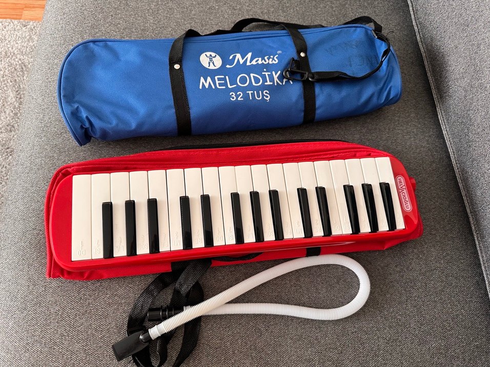 32 tuşlu renkli melodika, mavi taşıma çantası ve esnek boru ile birlikte gelir. Müzik severler için uygun .
