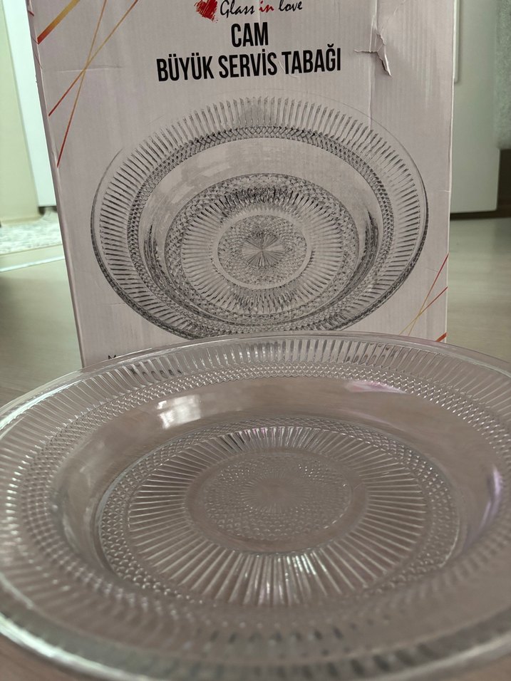 Clasin Love markasına ait büyük cam servis tabağı, 32cm hiç kullanılmamış kutuludur