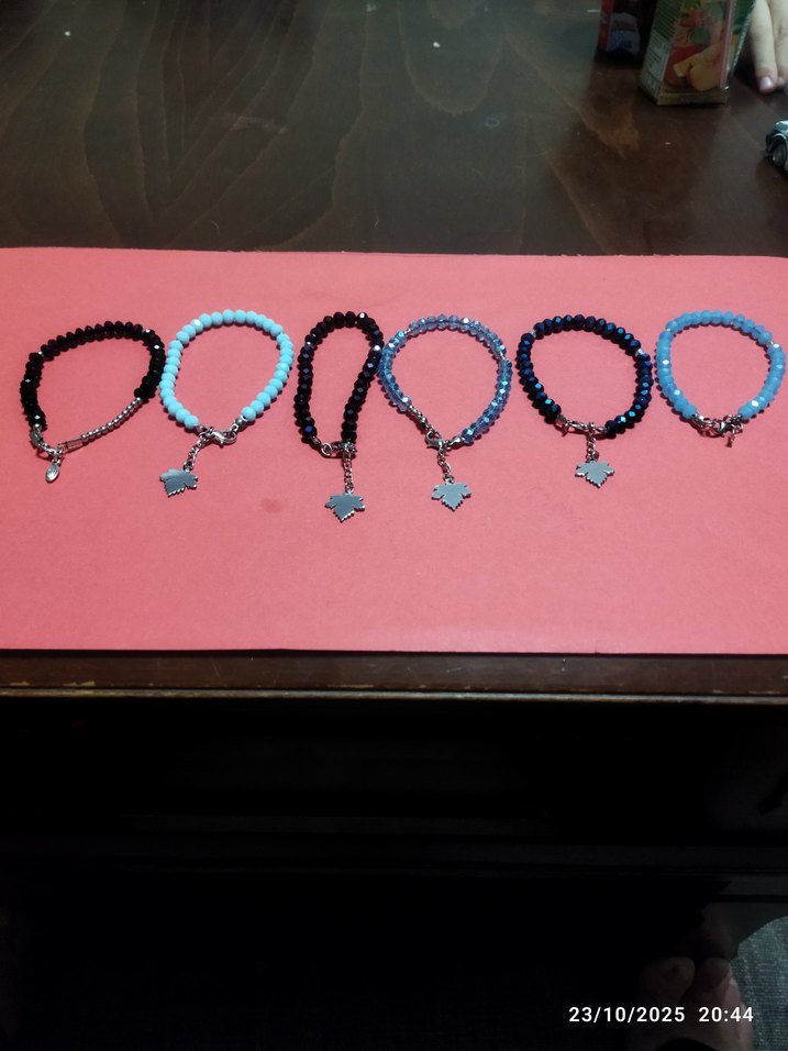 Tesbih Bileklikler Renkli turkuaz ve siyah boncuklu, nakış desenli küçük figürlü kadın bileklikler. Günlük kullanıma uygun bohem ve minimalist tarzda.