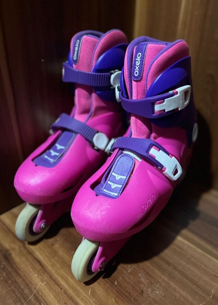 34 - 36 ayarlanılabilen pembe /mor çocuk decathlon paten