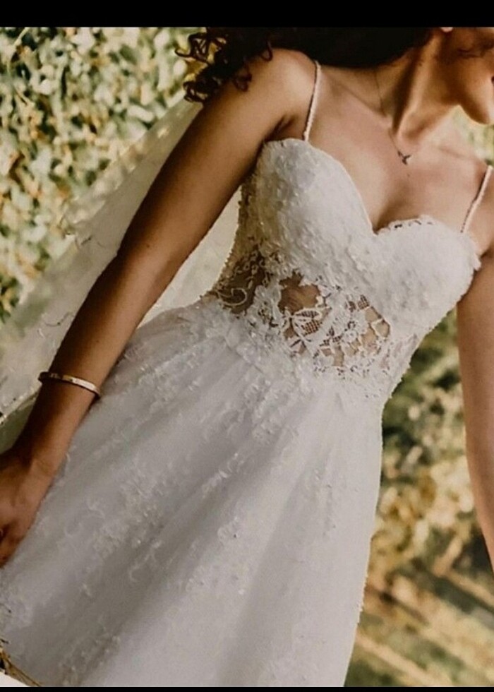 Arkası kurdeleli olup sırt kısmında sıkma ve genişletme yalılacaği için her iki bedene de uygundur.Kurdelinn hemen altından gizli bir fermuar yaptırdm terzide.Bu yüzden gelinliğin giyimi de çok basittir.Çok zarif duran bir gelinliktirr.Özel dikim bir gelinliktir.Duvağı ve tarlatanıda gelinliğin yanında vereceğim.Alan kişiye çok yakışacağına eminimm.Detaylı bilgi için soru sorabilirsin.