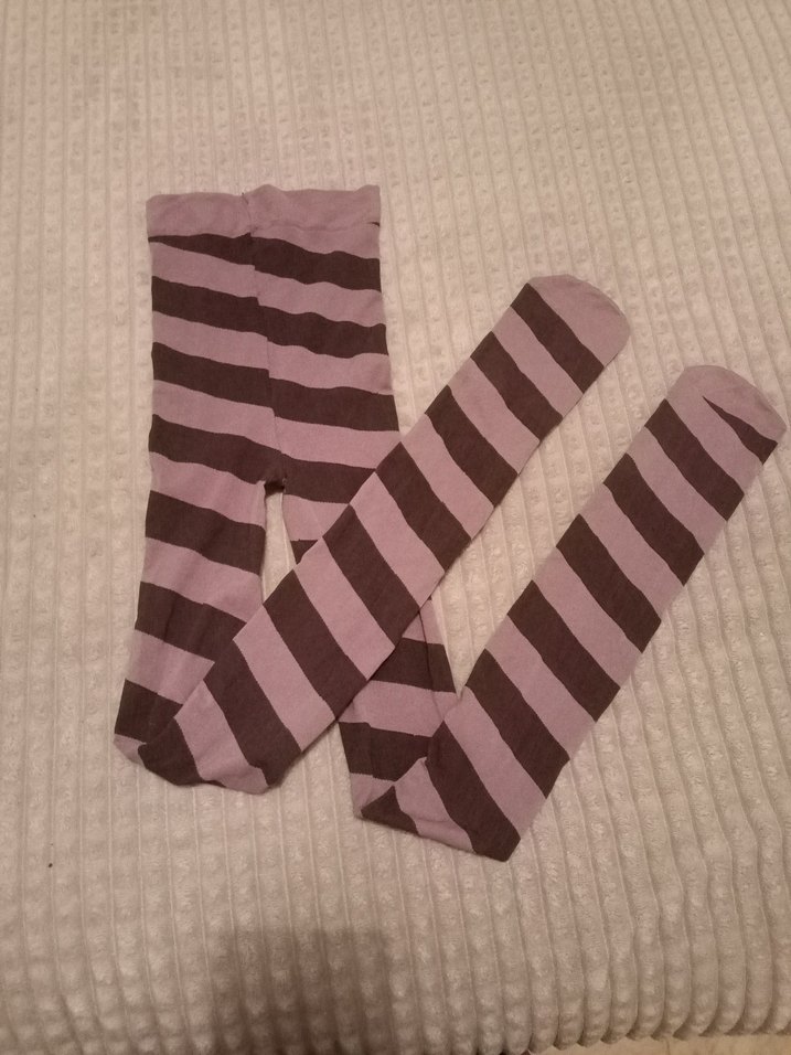 #yeni #temiz kullanılmamış esnek likralı polyester karışımlı 34/36 beden kilotlu çorap 40 denyeden daha kalın lila ve mor çizgili