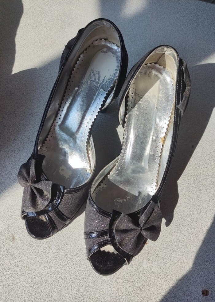 Yalnızca iki kez giyildi 34 numaradır özel gün simli kurdele detaylı özel gün abiye ayakkabı topuklu